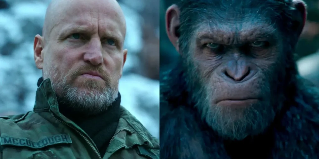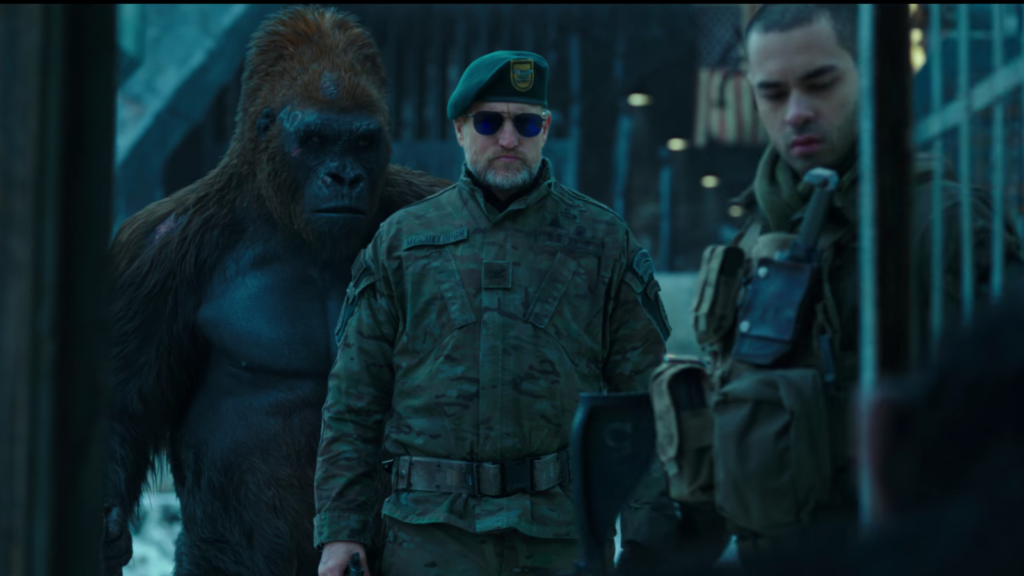 สองปีหลังจากยุทธการที่ซานฟรานซิสโก กองพันทหารสหรัฐฯ ที่รู้จักกันในชื่อ อัลฟา-โอเมก้า ได้รับความช่วยเหลือจากลิงที่ถูกเรียกอย่างดูถูกว่า ลา ได้ออกค้นหาอาณานิคมลิงของซีซาร์ หมวดหนึ่งโจมตีฐานที่มั่นของลิง แต่ลิงเหล่านั้นต้านทานการโจมตีและฆ่ามนุษย์ไปจนหมด เหลือเพียงมนุษย์สี่คนและกอริลลาลาชื่อเรด ซีซาร์ปล่อยมนุษย์ที่ถูกจับไปเป็นการแสดงท่าทีสงบศึก